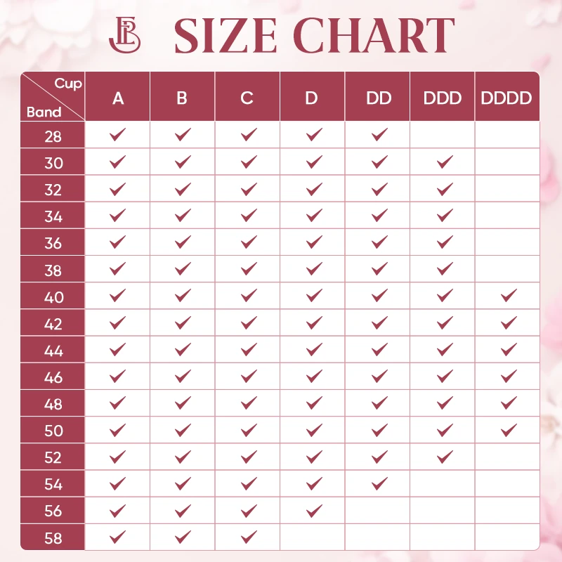 From Cup A to G! Band 28 to 58. Our wide range of sizes ensures a comfortable, supportive fit that flatters your shape.