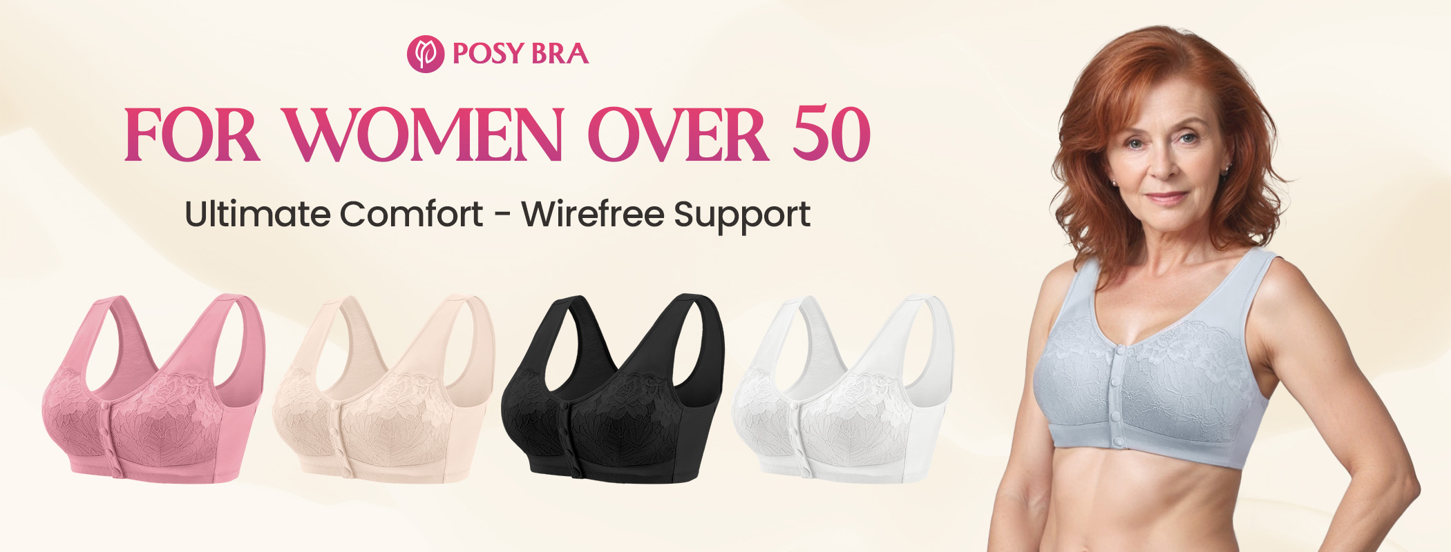 Your golden years deserve healthy bras! Posy Bra, designed for mature ladies, features soft microfiber cotton—skin-friendly, breathable, and shrink-resistant.
